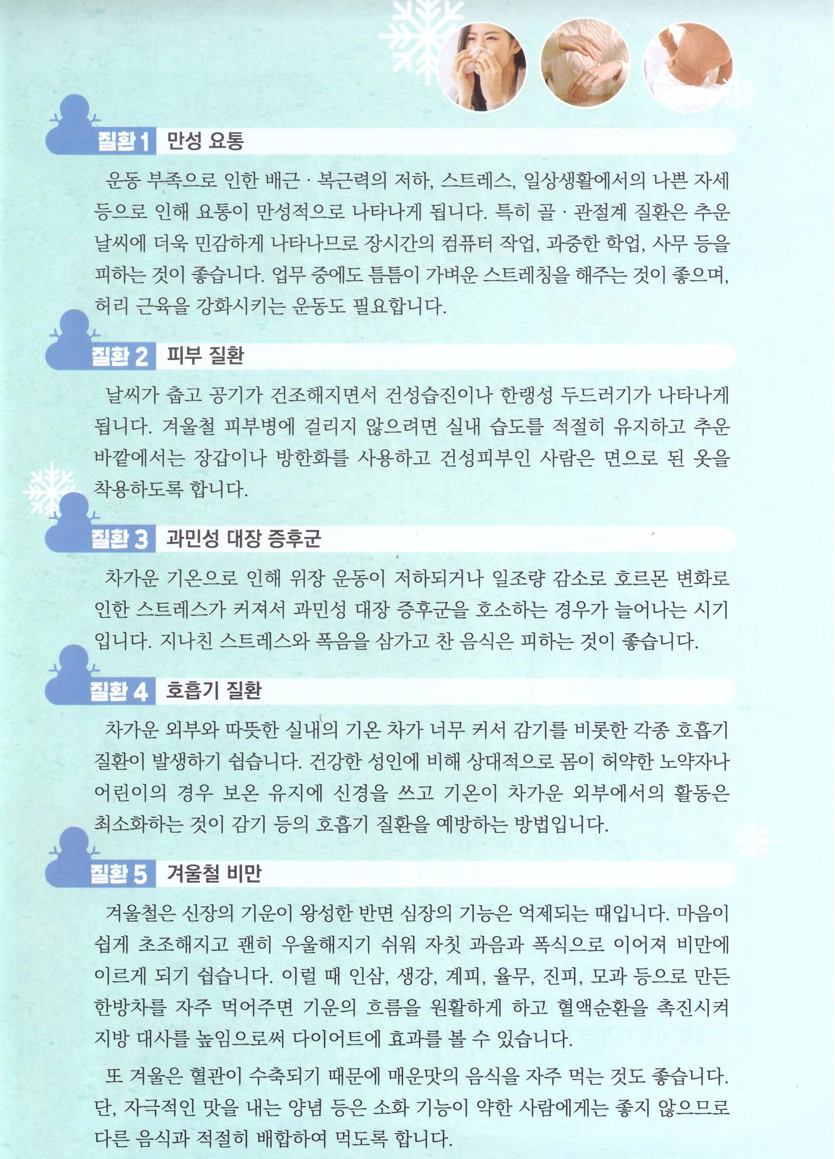겨울철 주의해야 할 질환