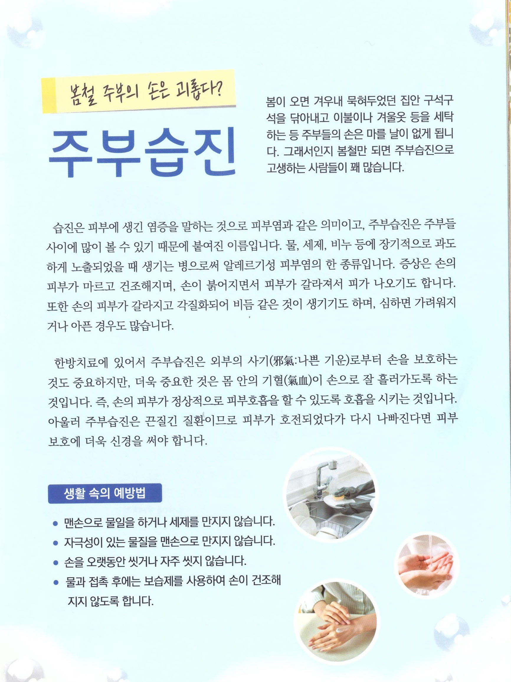 봄철 주부의 손은 괴롭다? 주부습진