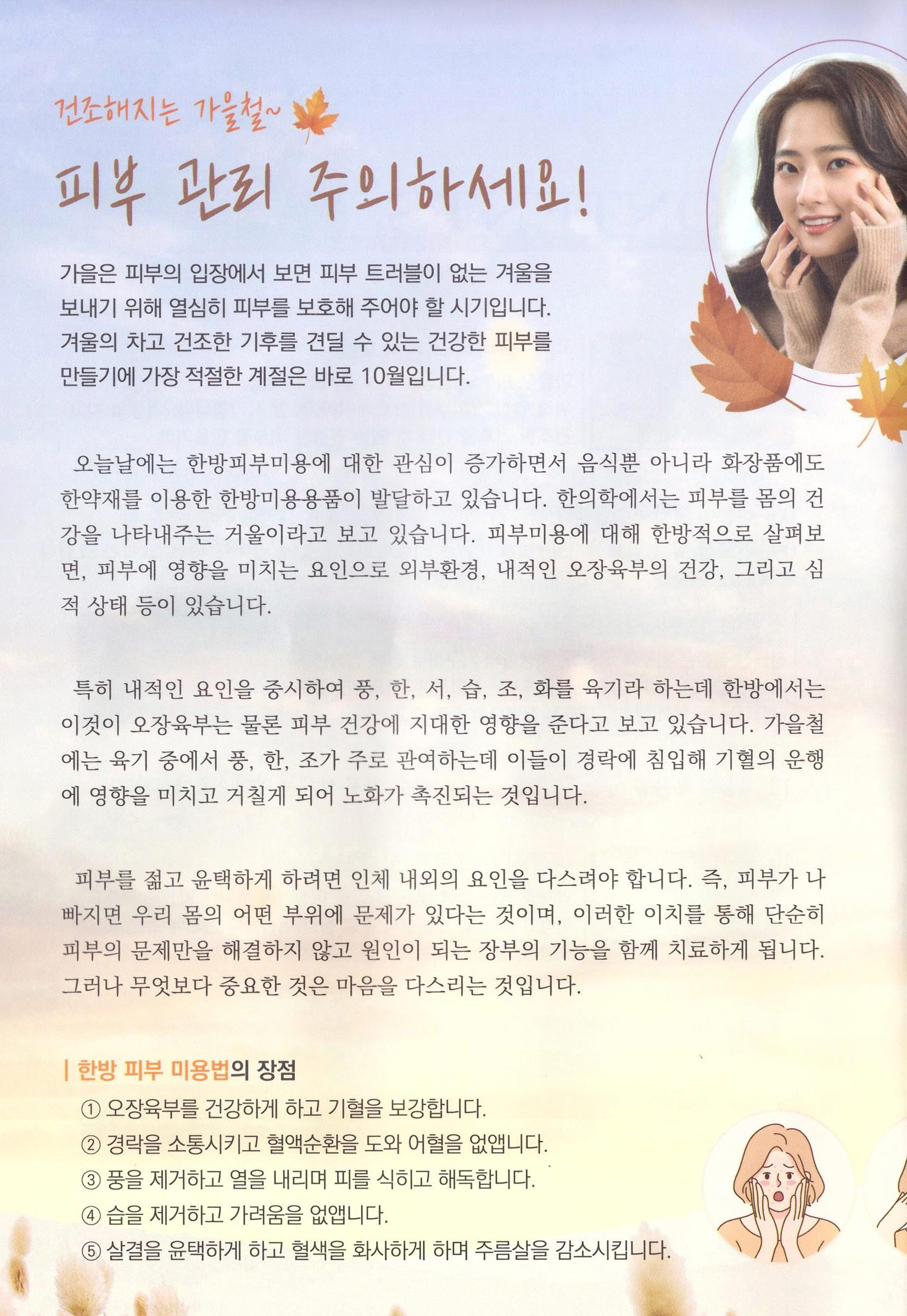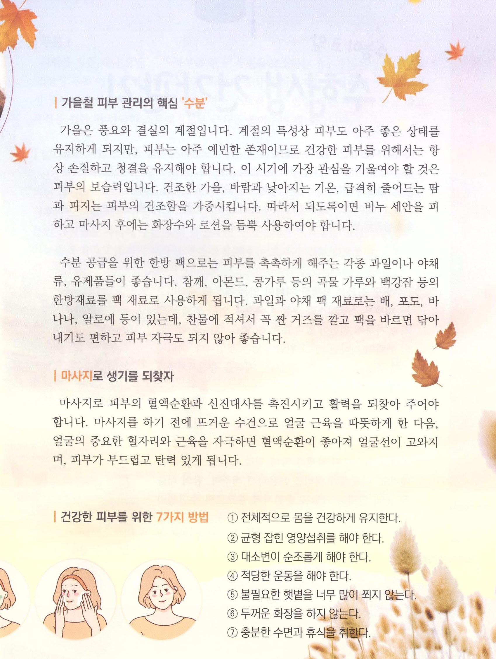 건조해지는 가을철~ 피부 관리 주의하세요!